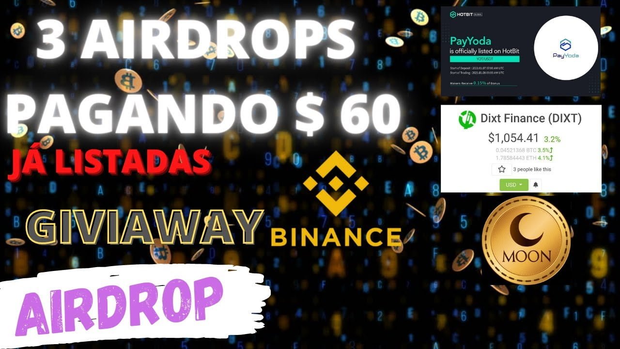AIRDROPS TOKENS JÁ LISTADOS - YOT $4 - MOON $5 - DIXT $50 | GIVEWAY…